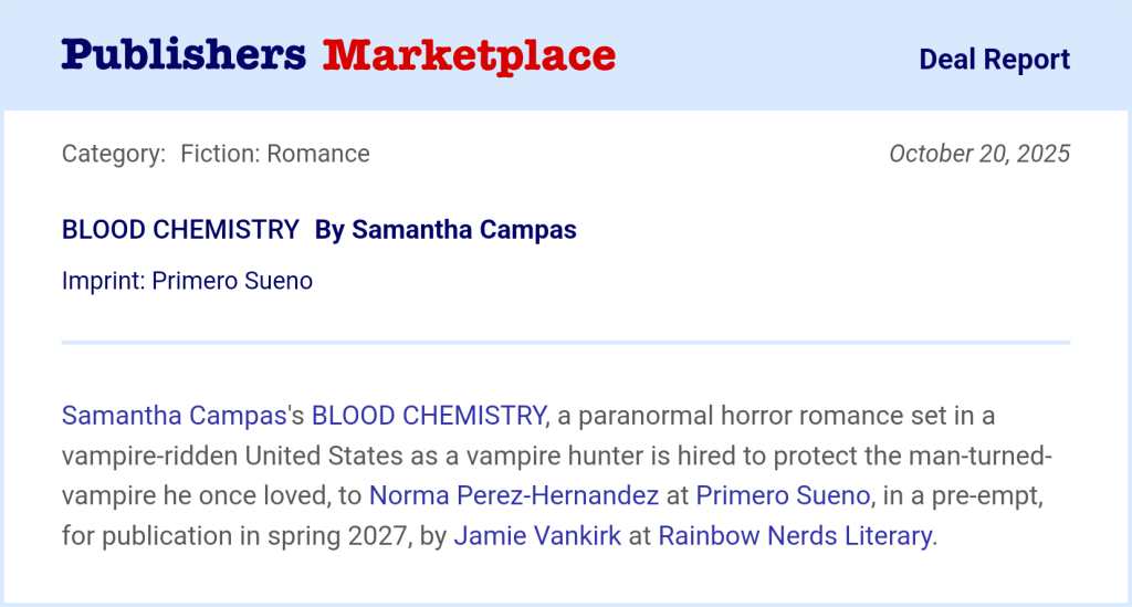 Samantha is a contributor to Chain Letter, a bold platform featuring weekly stories from diverse, boundary-pushing voices in horror, dark fantasy, and speculative fiction.